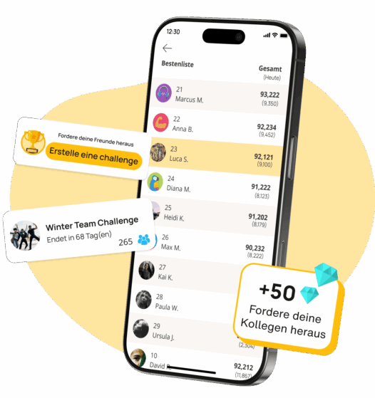 - Team- oder Einzel-Challenges steigern Motivation und Zusammenhalt